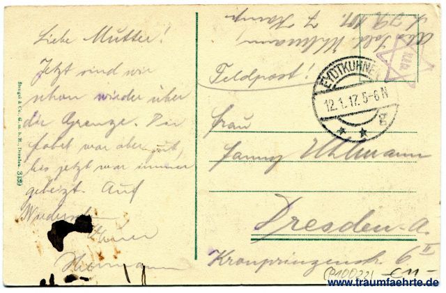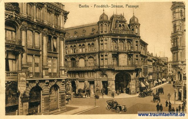 – Details – Jahr: ca. 1910 Status: gelaufen ohne Briefmarke, 1917 Beschriftung vorne: Berlin – Friedrich-Strasse, Passage, Castan's Panopticum, Hier, Passage, Panopticum mit Theater, Entrés 50 (Pfg.),... Beschriftung hinten: Stengel & Co., G.m.b.H., Dresden. 3139 Stempel: Eydtkuhnen, g, 12.1.17.5-6 N; [Davidsstern] St. & Co. Hinweis: