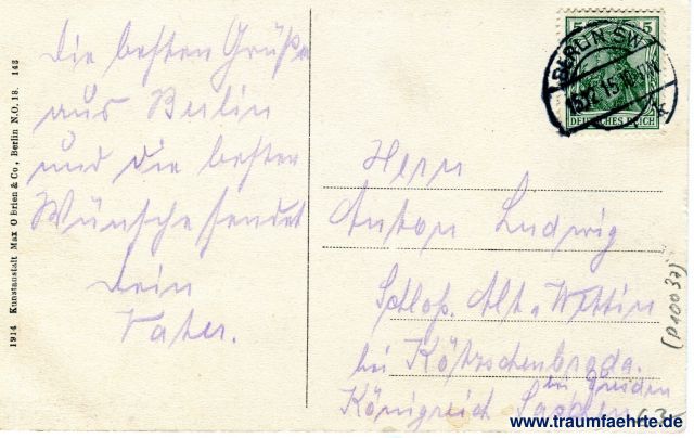 Beschriftung hinten: 1914 Kunstanstalt Max O Brien & Co, Berlin N.O. 18. 148