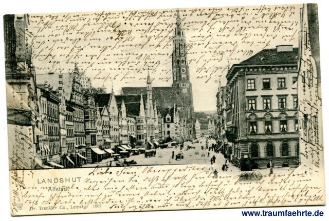 – Details – Jahr: ca. 1900 Status: gelaufen 1901 Beschriftung vorne: Landshut, Altstadt, Dr. Tenkler Co., Leipzig. 1862, D T C Beschriftung hinten: Postkarte. Stempel: (...); Bad Reichenhall 2, 11, NOV, 4-5N, 01 Hinweis: