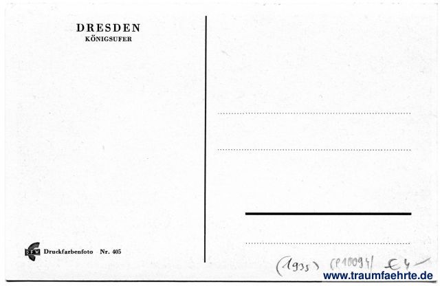 – Details – Jahr: ca. 1935 Status: ungelaufen Beschriftung vorne: kein Text Beschriftung hinten: Dresden, Königsufer – Blick zum Rosengarten, DFW, Druckfarbenfoto, Nr. 410 Stempel: keine Hinweis: