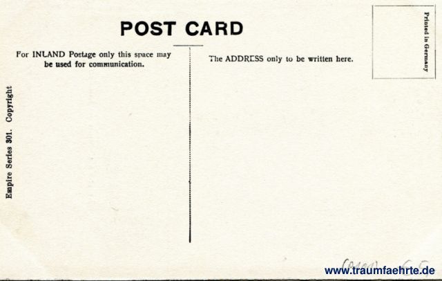 Beschriftung hinten: Post Card, For Inland Postage only thisd space may be used for communication. The Address only to be written here. Empire Series 301. Copyright, Printed in Germany