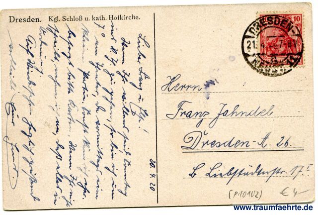 Stempel: Dresden-Neust. 11, 21.4.(20) 7-8V