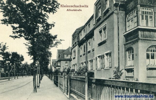 – Details – Jahr: ca. 1920 Status: ungelaufen Beschriftung vorne: Kleinzschachwitz, Albertstraße Beschriftung hinten: 5125 Adam's Kunstverlag, Dresden-A. 1, Annenstr. 26 Stempel: Sammlung Wollmann 1899 Hinweis:
