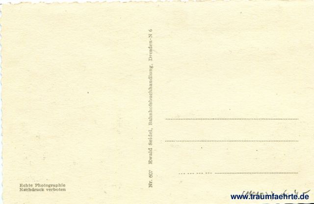 Beschriftung hinten: Echte Photographie, Nachdruck verboten, Nr. 607 Erwald Seidel, Bahnhofsbuchhandlung, Dresden-N. 6
