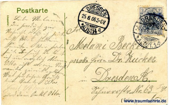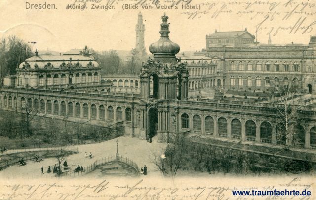 – Details – Year: ca. 1900 Postal state: postally used 1906 Inscription front: Dresden. Königl. Zwinger. (Blick von Weber's Hotel.), Wilhelm Hoffmann, A u, Dresden , 42 Inscription back: Postkarte, Absender: Postmark(s): Dresden-Altst. 1, h, 24.6.06 9-10N; Dresden-Altst. 14, a, 25.6.06.5-6V. Please note:
