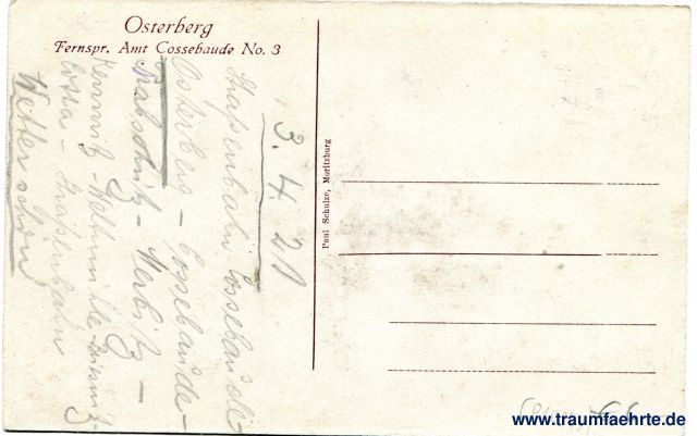 Inscription back: Osterberg, Fernspr. Amt Cossebaude No. 3, Paul Schulze, Moritzburg