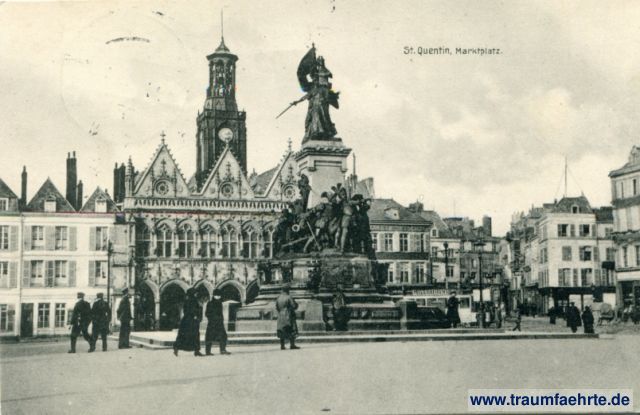Ansichtskarte Marktplatz (heutiger Place de l'Hotel de Ville) in St. Quentin / Saint-Quentin [ Permalink ]