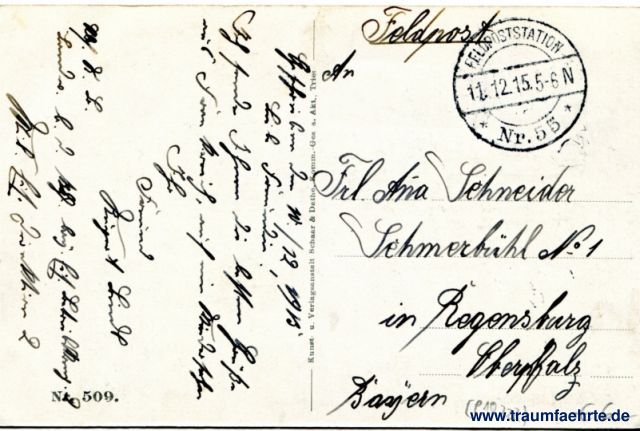 – Details – Jahr: ca. 1910 Status: gelaufen ohne Briefmarke (Feldpost), 1915 Beschriftung vorne: St. Quentin, Marktplatz. Beschriftung hinten: Nr. 509, Kunst- u. Verlagsgesellschaft Schaar & Dethe, Komm.-Ges a. Akt., Trier Stempel: Feldpoststation Nr. 55, 11.12.15. 5-6 N Hinweis: