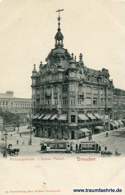 Inscription front: Polizeigebäude – Kaiser-Palast. Dresden. 56 Kunstverlag Max Köhler, Dresden-N.