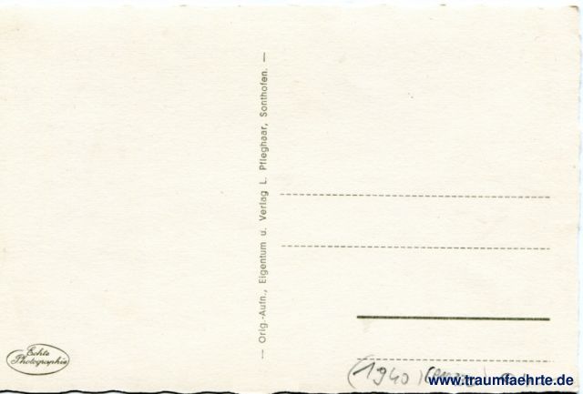 – Details – Year: ca. 1940 Postal state: postally unused Inscription front: Schöllang, 855 m bei Oberstdorf, Mädelegabelgruppe, Bockkarkopf, Hohes Licht, Linkerskopf, Rappenseeköpfe, Biberkopf, Schafalpen Inscription back: Orig.-Aufn., Eigentum u. Verlag L. Pfleghaar, Sonthofen. Echte Photographie Postmark(s): none Please note: