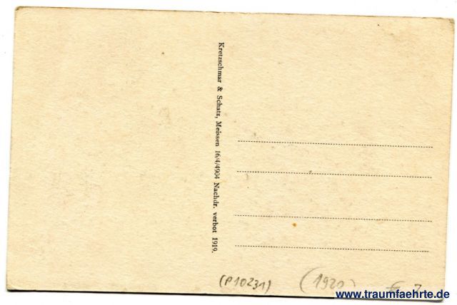 Beschriftung hinten: Kretzschmar & Schatz, Meissen 16/4/4904 Nachdr. Verbot 1919.