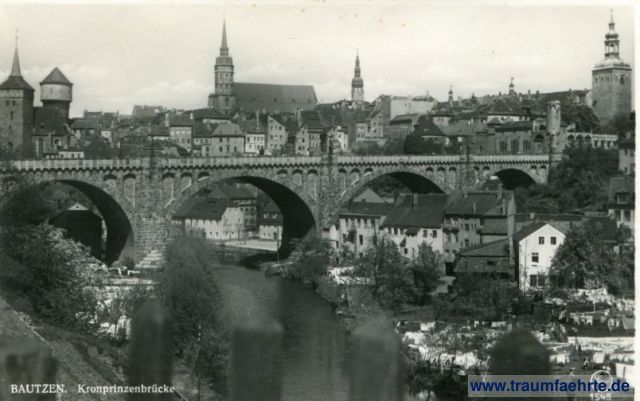 Beschriftung hinten: Bautzen, Kronprinzenbrücke, Original-Photoabzug. E. Wagner Söhne, Zittau i. Sa. Grottau CSR. Silesia-Verlag.