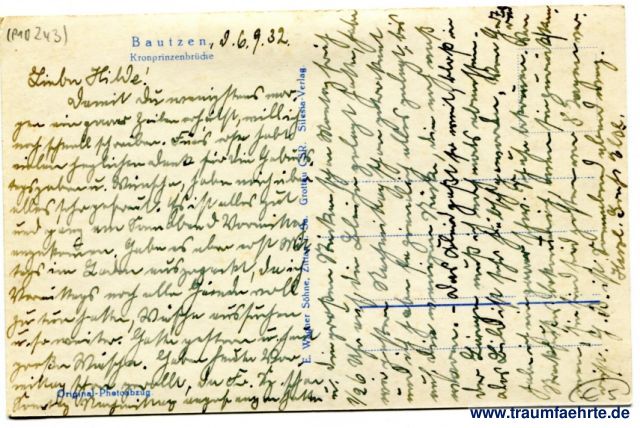 Zustand: Ecken rechts minimal geknickt, beschrieben obwohl ungelaufen (datiert: 6.9.32)