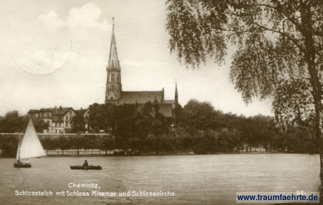 Ansichtskarte Schlosskirche & Schlossteich in Chemnitz [ Permalink ]
