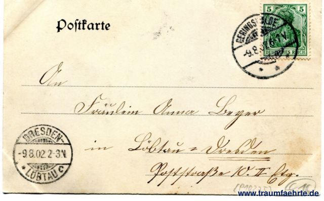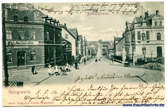 – Details – Jahr: ca. 1900 Status: gelaufen 1902 Beschriftung vorne: Geringswalde. Bahnhofstrasse. 42-500 Verlag Oscar Petzold, Geringswalde. Hotel & Restauration Otto Schammelt Beschriftung hinten: Postkarte Stempel: Geringswalde, -9.8.02.6-7V Hinweis: