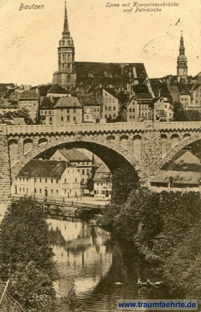 Ansichtskarte Friedensbrücke (ehemals Kronprinzenbrücke) in Bautzen / Budyšin [ Permalink ]