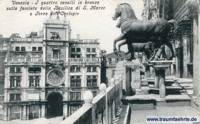 Beschriftung vorne: Venezia – I quattro cavalli in bronzo sulla facciata della Basilica di S. Marco e Torre dell'Orologio