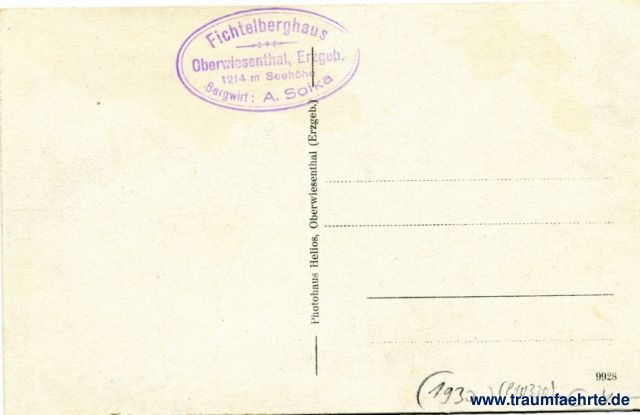 – Details – Jahr: ca. 1930 Status: ungelaufen Beschriftung vorne: Oberwiesenthal , Erzgeb., höchste Stadt Deutschlands und Fichtelberg (1214m) Beschriftung hinten: Photohaus Helios, Oberwiesenthal (Erzgeb.), 9928 Stempel: Fichtelberghaus, Bergwirt: A. Soika, Oberwiesenthal, Erzgeb. 1214 m Seehöhe Hinweis: