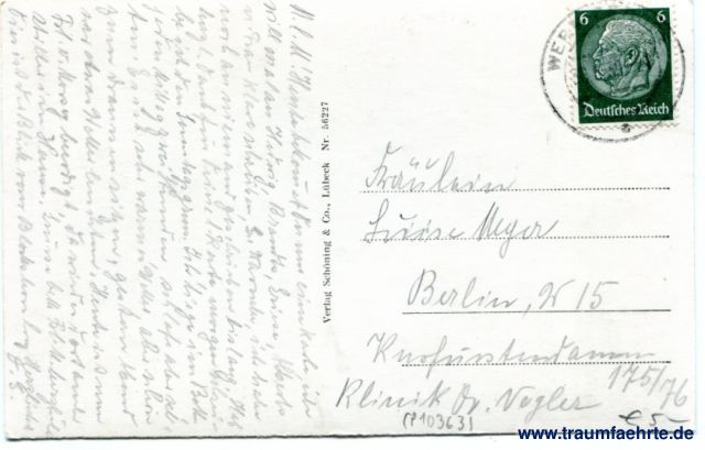 – Details – Jahr: ca. 1935 Status: gelaufen 1939 Beschriftung vorne: Wernigerode / Harz – Hasserode Beschriftung hinten: Verlag Schöning & Co., Lübeck, Nr. 56227 Stempel: Wernigerode, 30.6.39 (...) Hinweis: