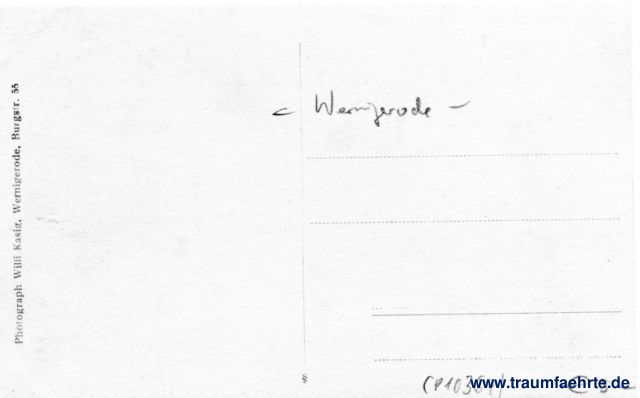 – Details – Year: ca. 1930 Postal state: postally unused Inscription front: no text Inscription back: Photograph Willi Kasig, Wernigerode, Burgstr. 55, § Postmark(s): none Please note: