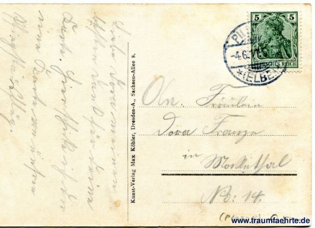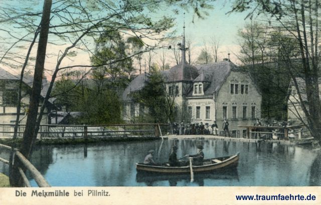 – Details – Year: ca. 1910 Postal state: postally used 1911 Inscription front: Die Meixmühle bei Pillnitz. Inscription back: Kunst-Verlag Max Köhler, Dresden-A., Sachsen-Allee 8 Postmark(s): Pillnitz (Elbe), -4.6.11.5-6N. Please note: