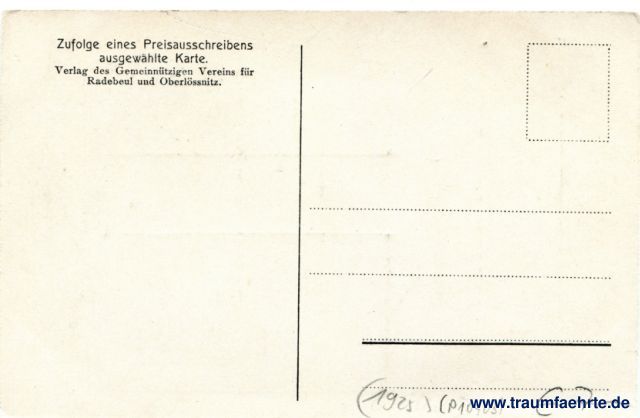 – Details – Jahr: ca. 1925 Status: ungelaufen Beschriftung vorne: Radebeul. Leipziger-Strasse mit den Linden. Beschriftung hinten: Zufolge eines Preisausschreibens ausgewählte Karte. Verlag des Gemeinnützigen Vereins für Radebeul und Oberlössnitz. Stempel: keine Hinweis: