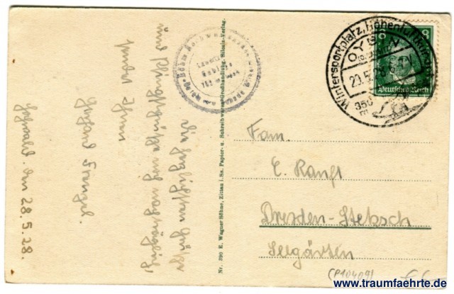 – Details – Year: ca. 1925 Postal state: postally used 1928 Inscription front: Rundschau vom Hochwald 752 m, N.W. N.O. S.O. S.W. Schuppenbg. Oybin, Hayn, Pferdeberg, Ameisenberg, Töpfer, Lückendorf, Petersdorf, Krombach, Schanzendorf, Jonsberg, Koitsche, Kratzau, Plissenberg, Buchberg, Warnsdorf, Gr. Schöna, Eibau, Löbauerbg. Oderwitz, Rothstein, Herrnhut, Bertsdorf, Hornitz, Herwigsdf. Landskrone, Zittau, Rohnau, Hirschfelde, Scharfenstein, Seitendorf, Friedersdorf, Ullersdorf, Reichenau, Neustadt, Grotlau, Gickelsbg. Grafenstein, Tafelfichte, Sichh. Taubenhaus, h. Rad, Schneegrube, Kalkbg. Pankraz, Jeschken, Kozakov, Ringelshain, Trosky, Falkenbg. Lämbg. Musky, Ruine Dewin, Hirschbg. Wartenbg. Gabel, Roll, Totz, Niemes, Bössig, Laden, Kummer Gebirge, Altperstein, Mikenhau, St. Limbg. Georgenbg. Lindenau, Ortelsbg. Willhoscht, Spitzbg. Ronbg. Grünbg. Haida, Zwickau, Geltsch, Milleschauer Kleis, Glasel, Grossmerkthal, Ruine Mühlst. Schneebg. Kaltenbg. Ob. Lichtenwalde, Finkenkuppe, Lausche, Ziegenrücken, Wolfsbg. Schönborn, Botzen, Valtenbg. Mühlsteinbr. Rumburg, Johannesst. Jonsdorf, Seifhennersd. Warnsd. Spitzb. Bieleboh, Czerneboh, Kottmar, Spitzbg. Breitebg. Inscription back: Nr. 390 E. Wagner Söhne, Zittau i. Sa. Papier- u. Schreibwaren Großhandlung. Silesia-Verlag. Postmark(s): Wintersportplatz, Höhenluftkurort, Oybin (O. Lausitz), 350 m, (...), 29.5.28.6-7V; (...) Böhm(...) Please note: