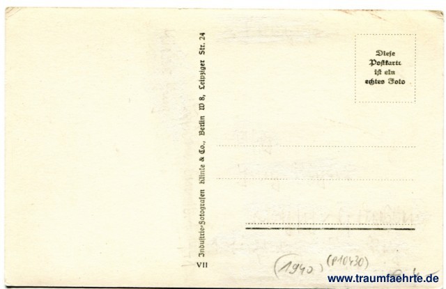– Details – Year: ca. 1940 Postal state: postally unused Inscription front: Luftschloß Pillnitz an der Elbe, Klinke & Co Berlin W 8, 12703 Inscription back: Industrie-Fotografen Klinke & Co., Berlin W 8, Leipziger Str. 24, VII, Diese Postkarte ist ein echtes Foto Postmark(s): none Please note: