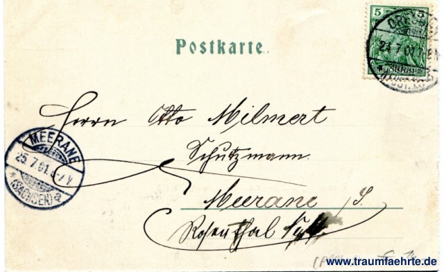 – Details – Jahr: ca. 1900 Status: gelaufen 1901 Beschriftung vorne: Dresden, den ...; Kaserne des 1. Leib-Grenadier-Regiments No. 100, Stenger & Co., Dresden u. Berlin, 3132 Beschriftung hinten: Postkarte. ... Stempel: Dresden-Neust. 15, b, 24.7.01.7-8(...); Meerane (Sachsen), a, 25. 7.01.6-7V. Hinweis: