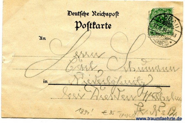– Details – Jahr: ca. 1894 ! Status: gelaufen 1894 Beschriftung vorne: Klügels Restauration, Schönster Aussichtspunkt auf dem Löbauer Berge. Den ... 18 ... König Friedrich August-Thurm. Herrm. Knebel, Görlitz. Beschriftung hinten: Deutsche Reichspost, Postkarte, An ... in ... Stempel: Löbau (Sachsen), 13.9.94.8-9N Hinweis: