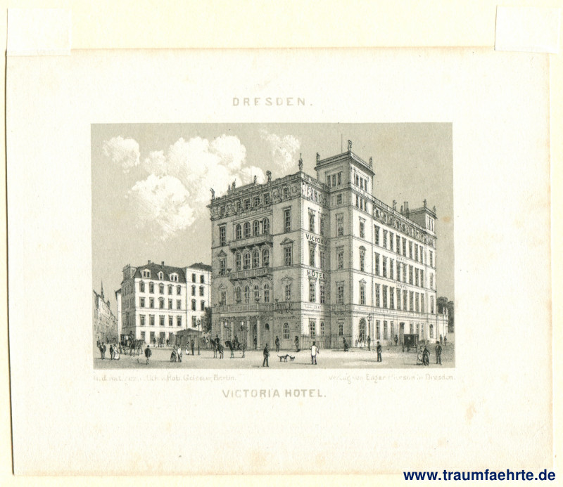 Beschriftung: Dresden. Victoria Hotel. N. d. Nat. gez. u. lith. v. Rob. Geissler, Berlin. Verlag von Edgar Pierson in Dresden.