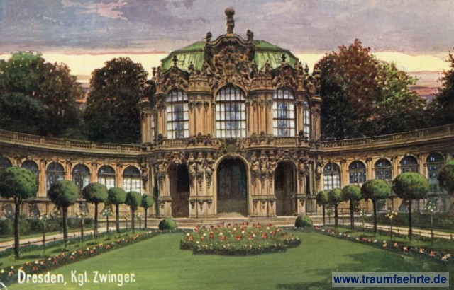 Postcard Zwinger pallace, art gallery, Nymphenbad in Dresden [ Permalink ]
