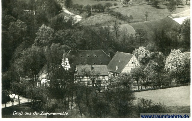 – Details – Year: ca. 1935 Postal state: postally used 1936 Inscription front: Gruß aus der Zschonermühle. Inscription back: Zschonermühle-Dresden 29, Ruf Cossebaude 196. Echte Photographie, Nachdruck verboten, Verlag F. O. Gräfe, Dresden N. Wilder-Mann-Strasse 36 Postmark(s): Dresden-A (7), 11 5 36, 11-12 (...), b; Fernsprecher Zeitu(ng) Please note:
