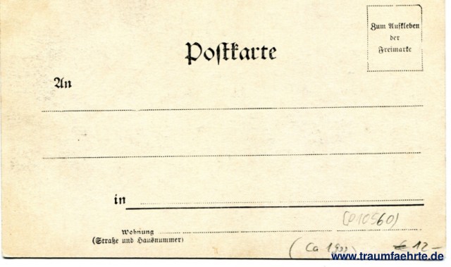 – Details – Jahr: ca. 1900 Status: ungelaufen Beschriftung vorne: Dresden. Hauptbahnhof. No. 9. Beschriftung hinten: Postkarte. ... In ... Wohnung (Straße und Hausnummer) ... Zum Aufkleben der Freimarke Stempel: keine Hinweis: