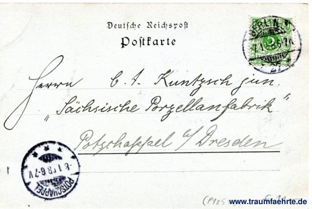 Postmark(s): Berlin (...), 27, -7.1.98.6-7N; Potschappel, ***, -8.1.98 6-7V.