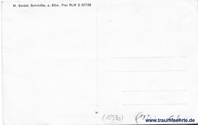 – Details – Year: ca. 1935 Postal state: postally unused Inscription front: Schmilka, Sächs. Schweiz, 331, M. Seidel, Schmilka Inscription back: M. Seidel, Schmilka a. Elbe, Frei RLM E 32735, M Postmark(s): none Please note: