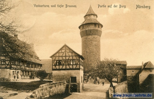 – Details – Year: ca. 1905 Postal state: postally used 1907 Inscription front: Vestnerturm und tiefer Brunnen, Partie auf der Burg, Nürnberg Inscription back: Postkarte, (Raum für Mitteilungen.), (Nur für Adresse.), Verlag: Richard Borek, Braunschweig, 54 Postmark(s): Nuernberg 2.B.A., 2. Jul 07. V. 8-9, a Please note: