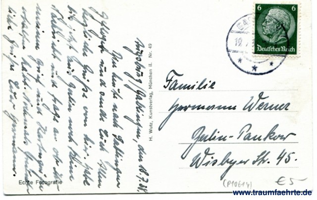 – Details – Jahr: ca. 1935 Status: gelaufen 1938 Beschriftung vorne: Augsburg. Total von St. Ulrich aus Beschriftung hinten: Echte Fotografie, H. Wutz, Kunstverlag, München II. Nr. 49 Stempel: Gab(lingen), 19. (...) 3(8...) Hinweis: