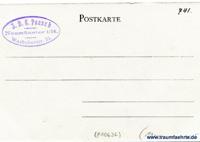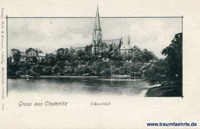 – Details – Year: ca. 1910 Postal state: postally unused Inscription front: Gruss aus Chemnitz, Schlossteich, Verlag: Mohr & Dutzauer, Leipzig. Nachdruck verboten. 3010 Inscription back: Postkarte Postmark(s): J. D. E. Paasch, Neumünster/H. Wasbekerstr. 31. Please note: