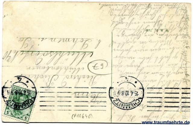 – Details – Jahr: ca. 1905 Status: gelaufen 1910 Beschriftung vorne: Chemnitz. Beckerplatz. Dresdner Bank. Poststraße. Beschriftung hinten: W. H. D. 7109 Stempel: 2x Chemnitz, 4, 15.4.10.8-9 N; 2x --- Hinweis: