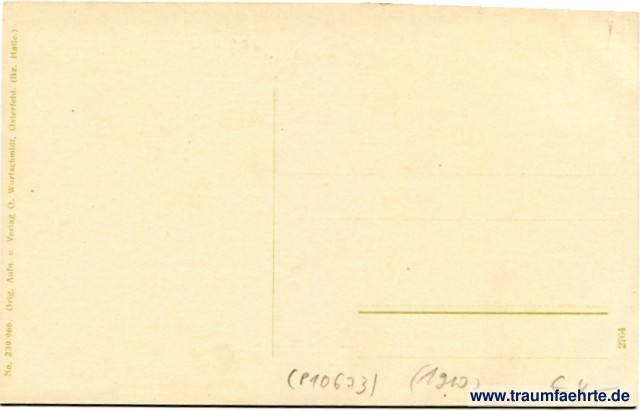 – Details – Jahr: ca. 1910 Status: ungelaufen Beschriftung vorne: Ruine Saaleck bei Kösen. Beschriftung hinten: No. 239/966. Orig. Aufn. U. Verlag O. Wurfschmidt, Osterfeld (Bz. Halle), 2764 Stempel: keine Hinweis: