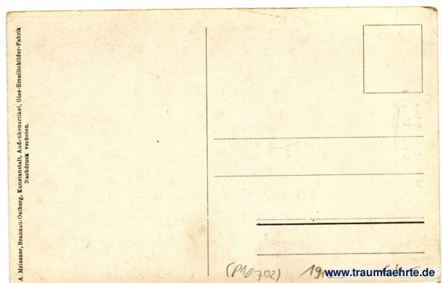 – Details – Year: ca. 1910 Postal state: postally unused Inscription front: Wekelsdorfer Felsen, Grosser Domplatz Inscription back: A. Meissner, Braunau-Oelberg, Kunstanstalt, Andenkenartikel, Glas-Emaillebilder-Fabrik, Nachdruck verboten. Postmark(s): none Please note: