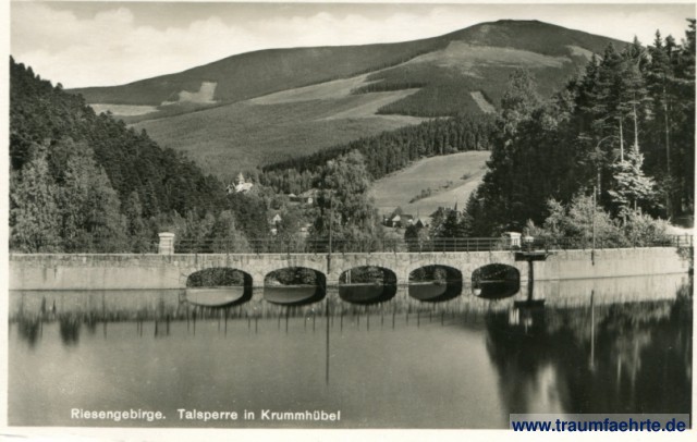 Beschriftung vorne: Riesengebirge. Talsperre in Krummhübel