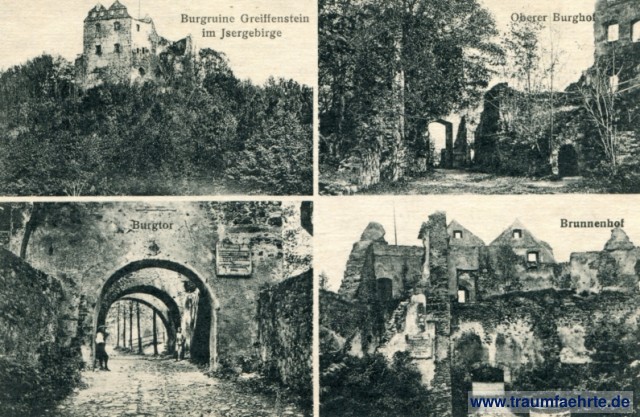 Beschriftung vorne: Burgruine Greiffenstein im Isergebirge, Oberer Burghof, Burgtor, Brunnenhof