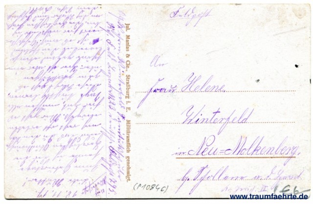 – Details – Jahr: ca. 1915 Status: ungelaufen Beschriftung vorne: Mörchingen i. Lothr. Beschriftung hinten: Jul. Manias & Cie., Straßburg i. E. Militäramtlich genehmigt. Stempel: keine Hinweis: