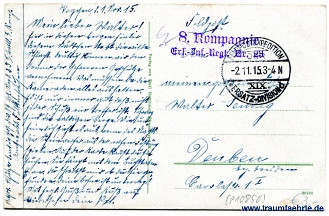 – Details – Jahr: ca. 1910 Status: gelaufen ohne Briefmarke (Feldpost), 1915 Beschriftung vorne: Schirmeck. Beschriftung hinten: Verlag von Emil Hartmann, Strassburg i. E. 28138 Stempel: 8. Kompagnie, Ers.-Inf.-Regt. Nr. 23; Feldpostexpedition XIX. Ersatz-Division, b, -2.11.15.3-4 N Hinweis: