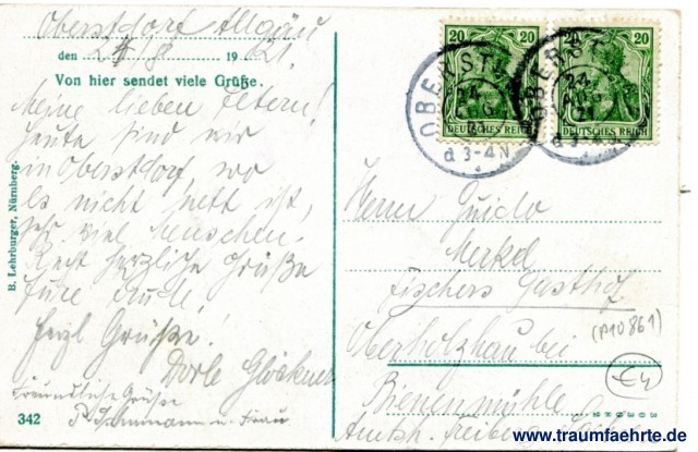 – Details – Jahr: ca. 1920 Status: gelaufen 1921 Beschriftung vorne: Oberstdorf i. Allgäu, südlichste Spitze des Deutschen Reichs, Kegelkopf, Krottenköpfe, 2655 m, Fürschießer, Kratzer, 2429 m Beschriftung hinten: den ... 19 ... Von hier sendet viele Grüße. 342 B. Lehrburger, Nürnberg. 303082 Stempel: 2x Oberstdorf, 24 Aug 21, d, 3-4N Hinweis: