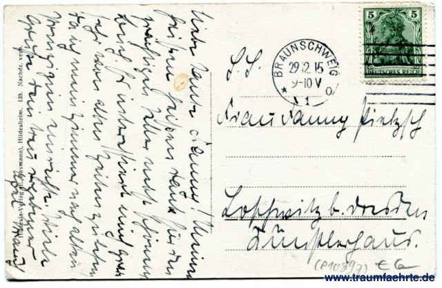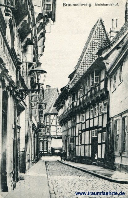 – Details – Jahr: ca. 1910 Status: gelaufen 1915 Beschriftung vorne: Braunschweig. Meinhardshof. Beschriftung hinten: Hildesia-Verlag (E. Baxmann), Hildesheim. 139. Nachdr. Verb. Stempel: Braunschweig, 1, 0, 29.12.15, 9-10V; --- Hinweis: