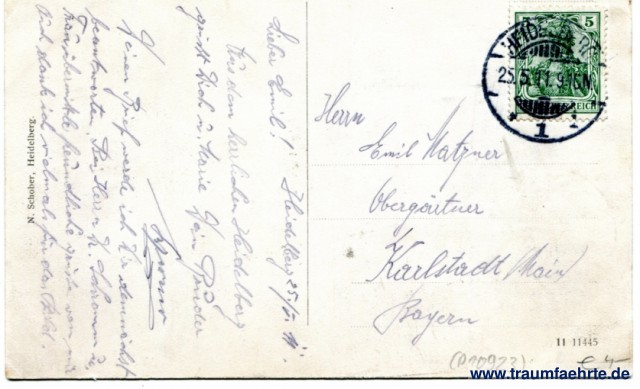 – Details – Year: ca. 1910 Postal state: postally used 1911 Inscription front: Heidelberg, Schlossalter im Mondschein Inscription back: N. Schober, Heidelberg. 11 11445 Postmark(s): Heidelberg, 1, 25.5.11.9-10N. Please note: