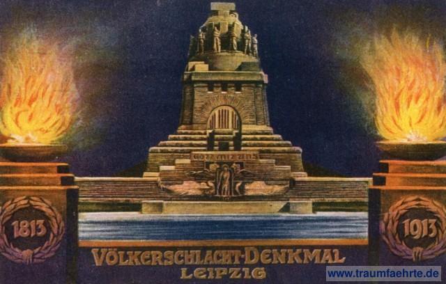 – Details – Jahr: 1913 Status: gelaufen 1913 Beschriftung vorne: Völkerschlacht-Denkmal Leipzig, 1813, 1913, Gott mit uns,... Beschriftung hinten: Offizielle Postkarte zur Weihe des Völkerschlacht-Denkmals am 18. Oktober 1913. 1813, 1913, FW 1813, Mit Genehmigung des Deutschen Patriotenbundes, Verlag: Karl Fickenscher, Leipzig – Druck: Louis Glaser, Leipzig Stempel: 3x Leipzig, 18.10.1913. Weihe des Völkerschlacht-Denkmals Hinweis: